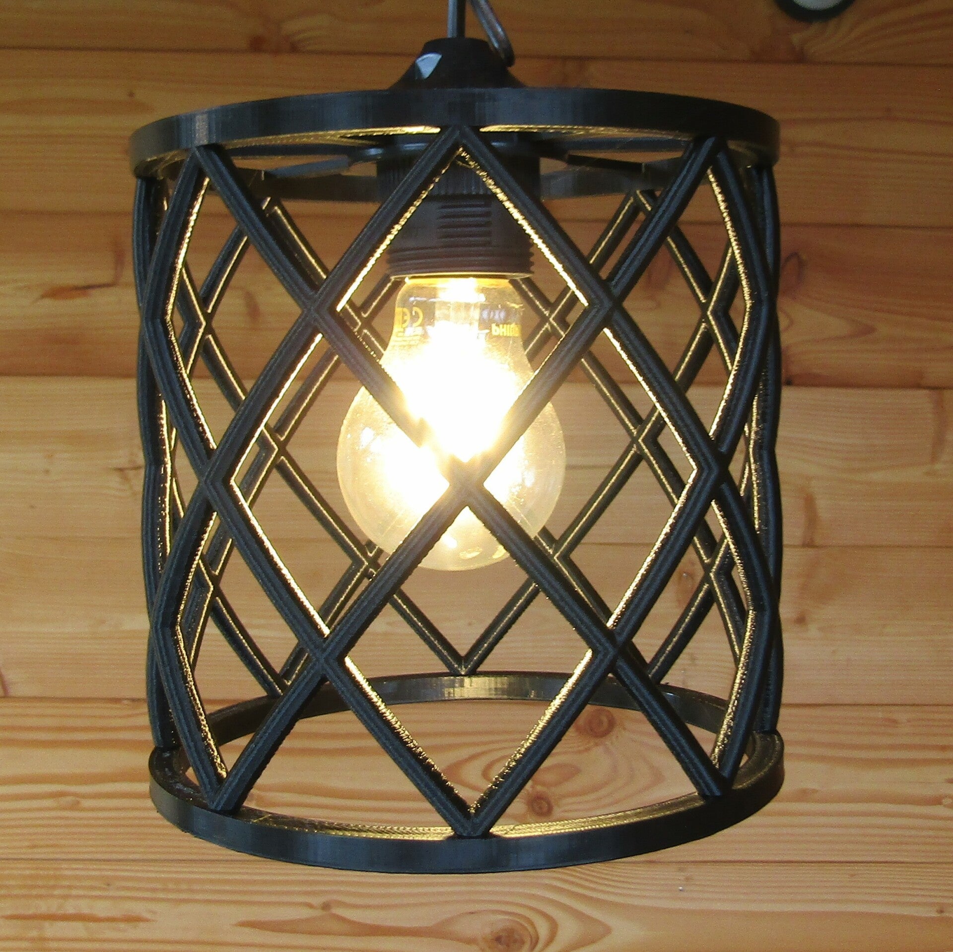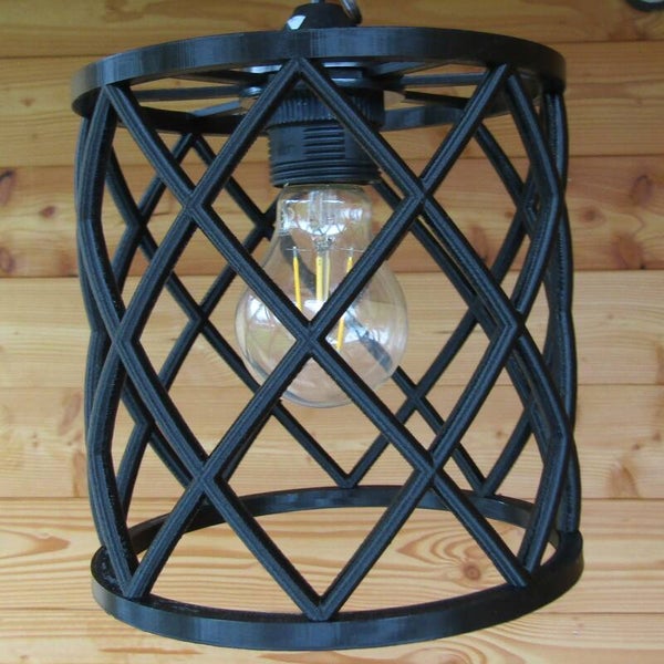 - Industriële stijl lampenkap bestaande cirkels en diagonale spijlen.